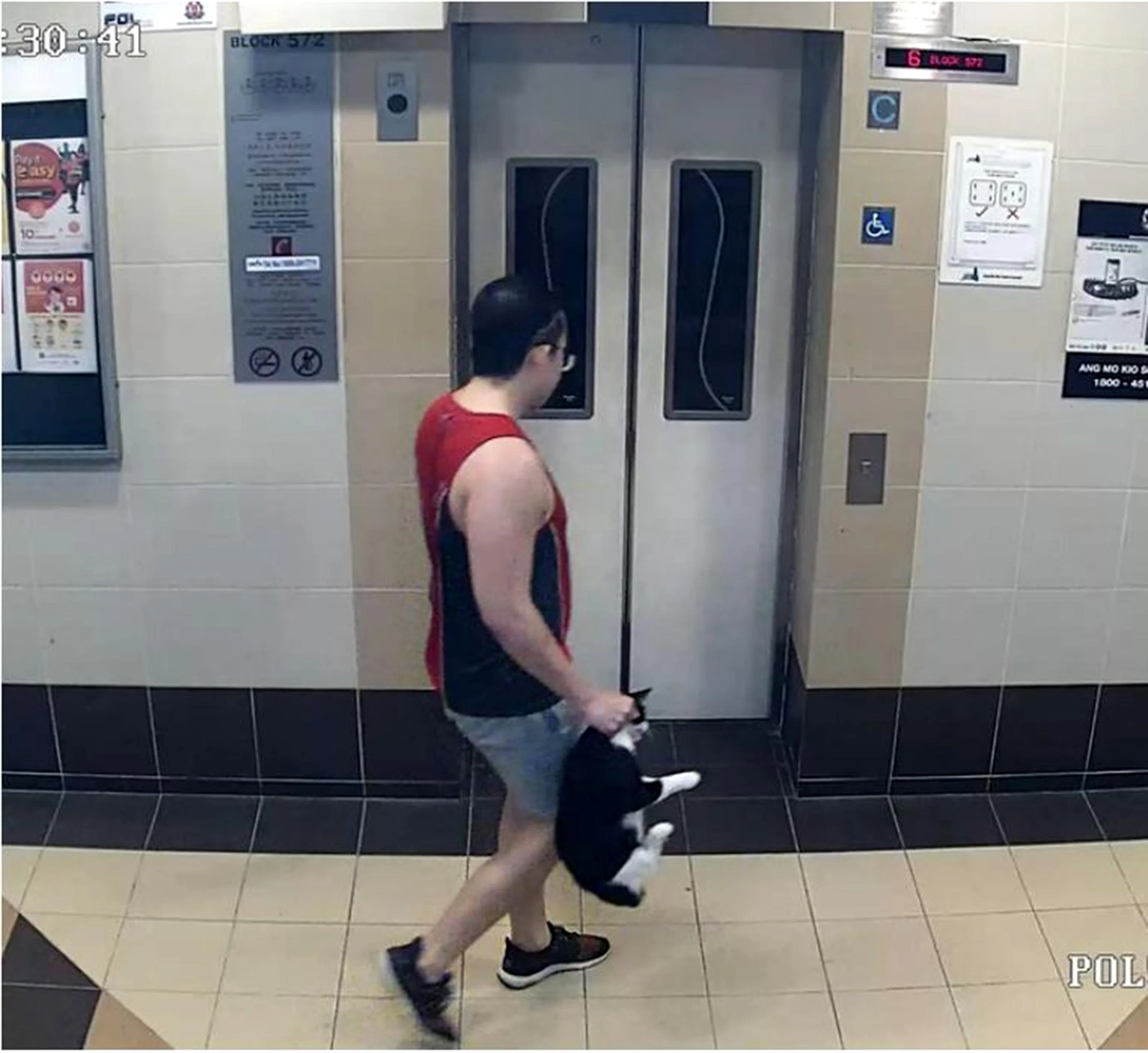 On May 15, 2020, at about 3.30am, Lin caught a cat and carried it up to the eighth floor of Block 645 Ang Mo Kio Avenue 6.