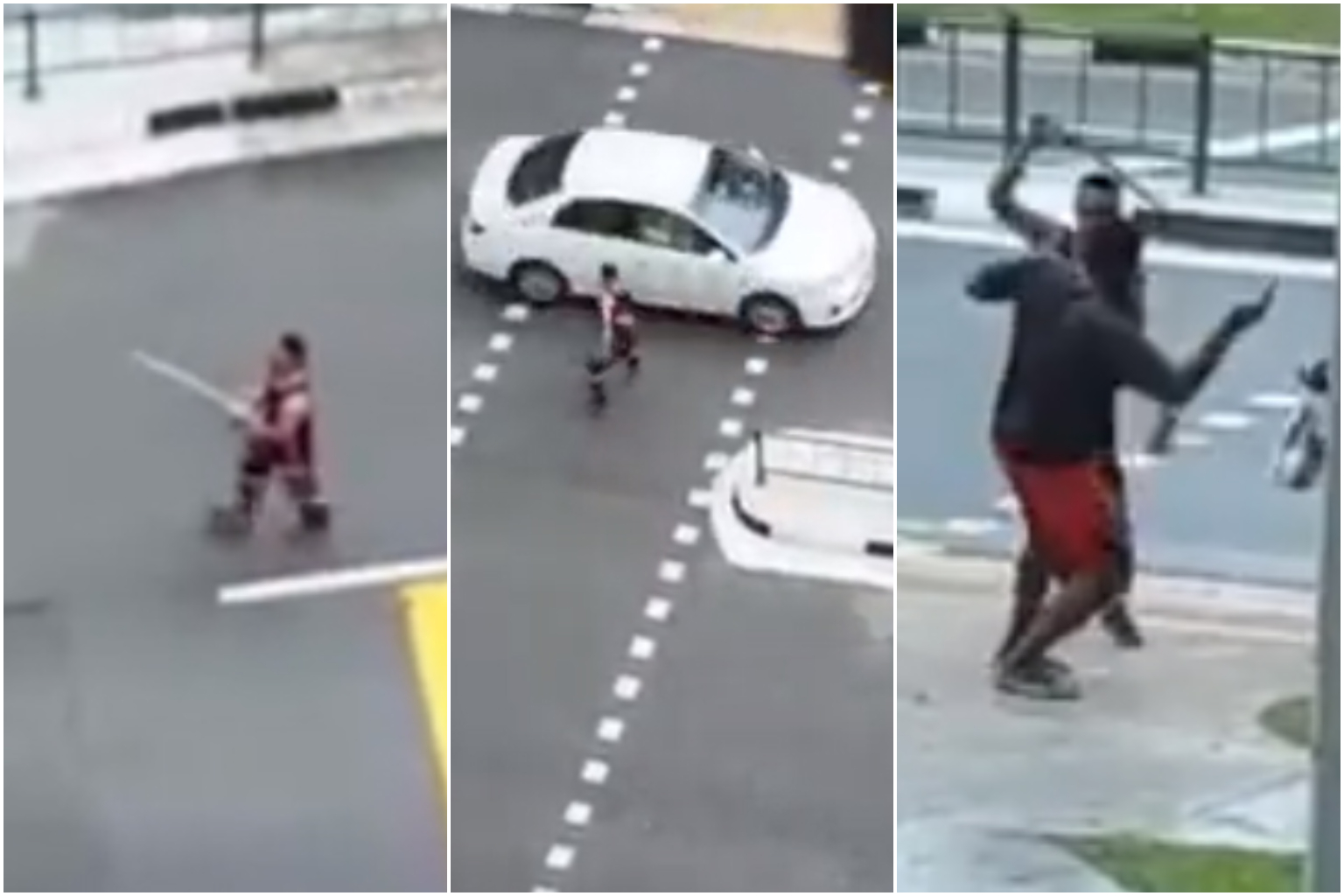 The man and two members of the public sustained minor injuries, with one man taken to Sengkang General Hospital conscious after suffering two superficial slash wounds on his left arm. Another suffered abrasions on his left knee.