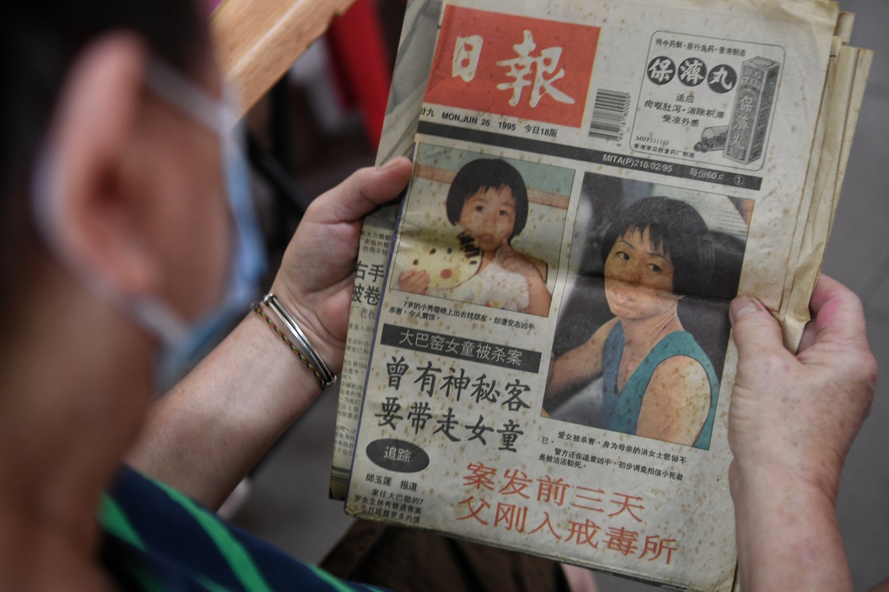Madam Ang Goon Lay reads an old article about the murder of her daughter Lim Shiow Rong.