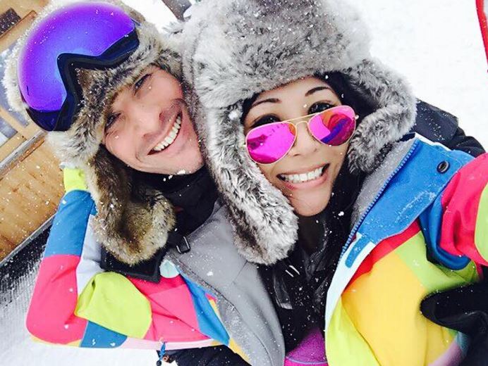Model-DJ Tenashar with her boyfriend Thorsten Nolte on holiday in February 2016.