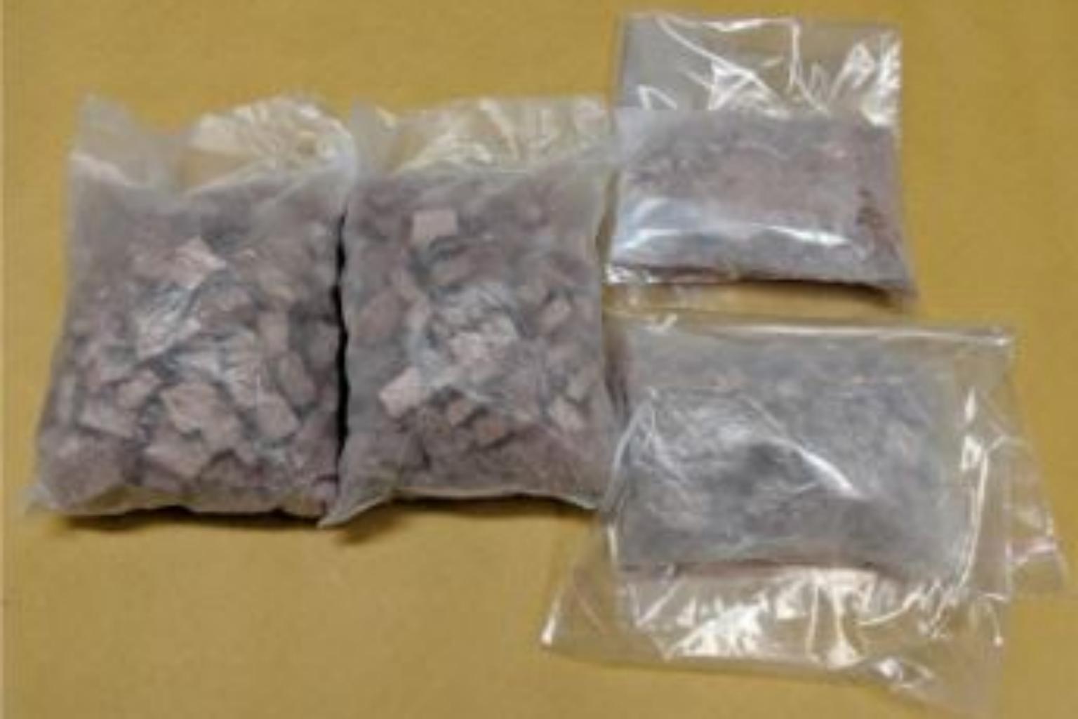 CNB officers recovered a total of 980g of Ice, 541g of cannabis, 327 Ecstasy tablets, 19 Erimin-5 tablets and 615g of white powdery substance of an unknown nature.