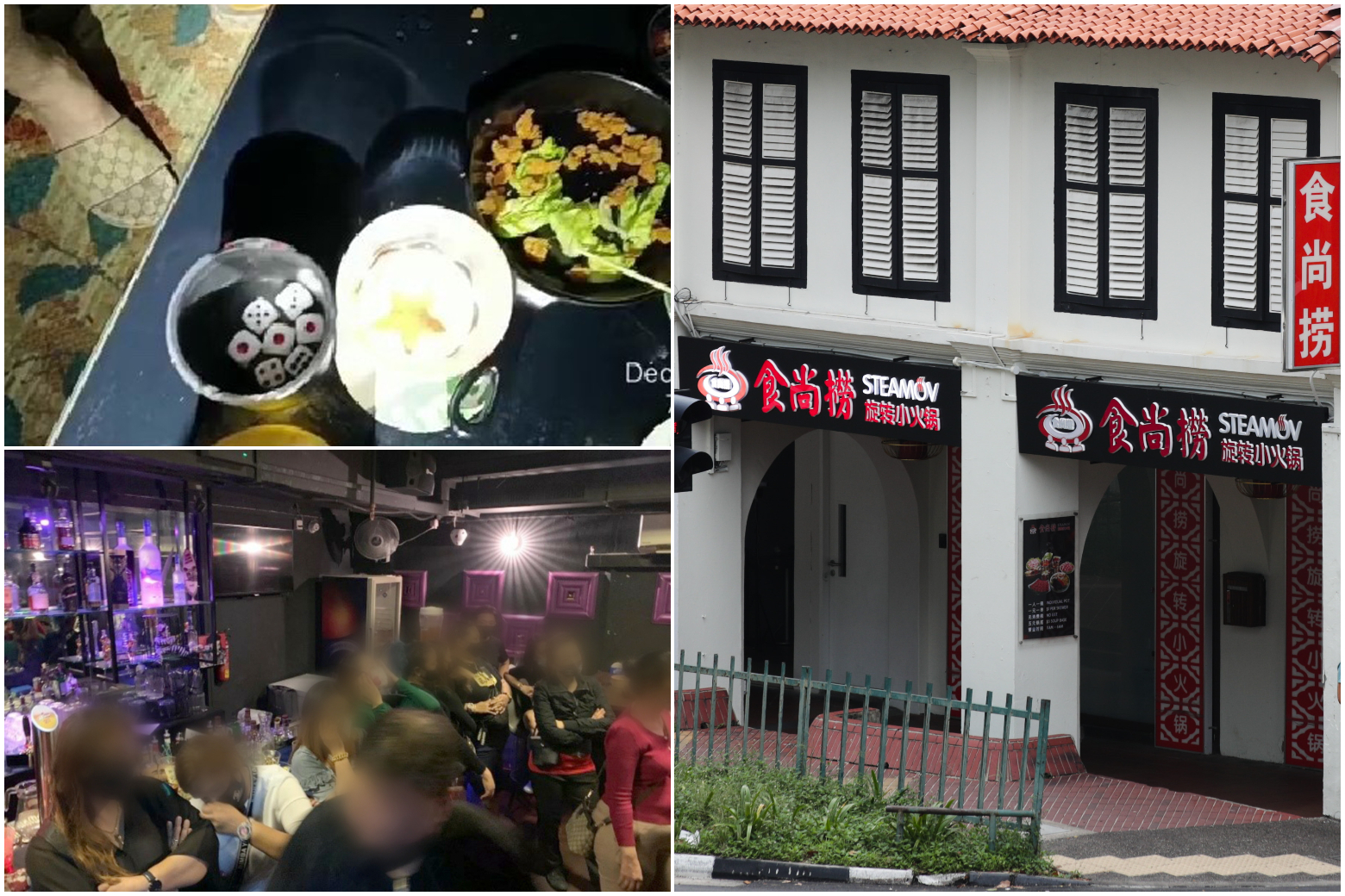(Clockwise from top left) Haru Bar, Steamov Steamboat Buffet Restaurant and MZS Family Karaoke were among the outlets which had their licenses revoked.