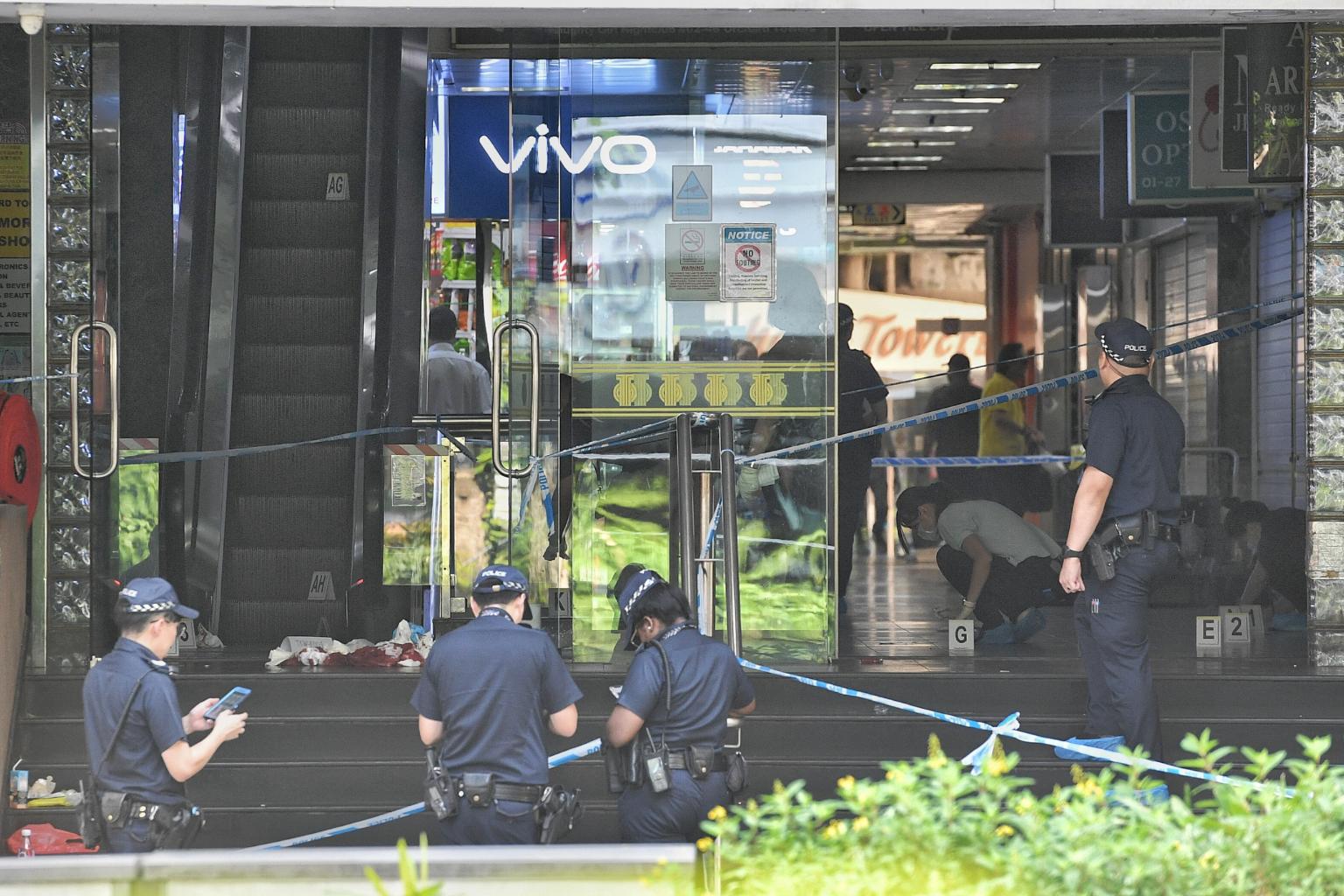 Police officers investigating the crime scene at Orchard Towers on July 2, 2019. Tan Hong Sheng had failed to turn up in court on Aug 29.