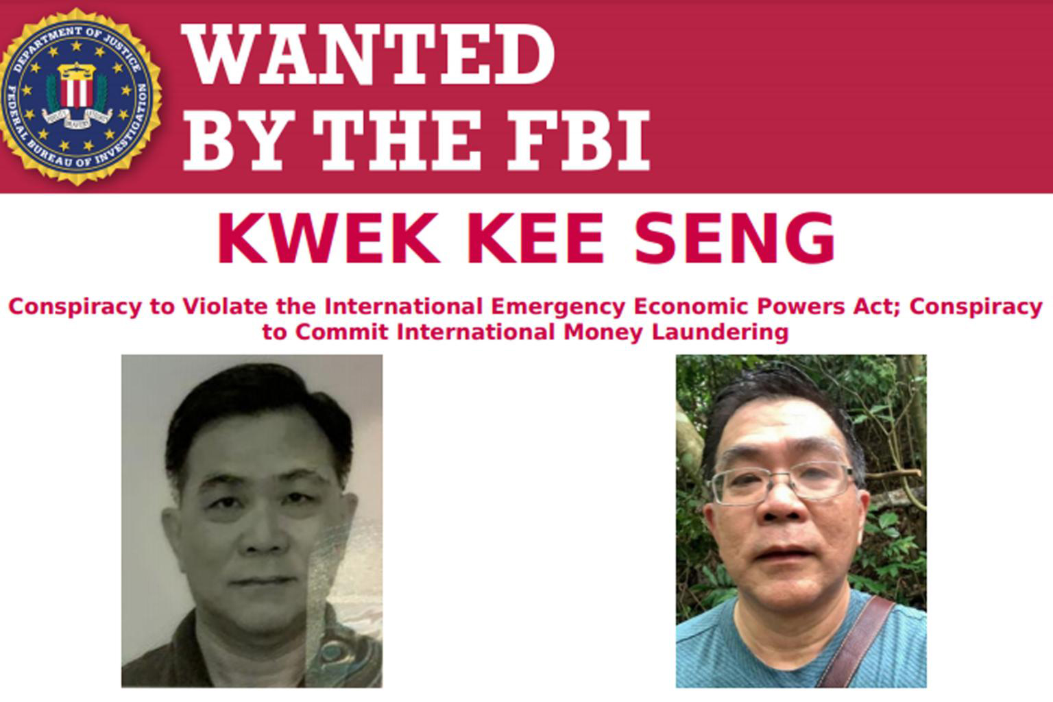 Kwek Kee Seng is wanted in the United States for allegedly flouting sanctions by doing business with North Korea and laundering money.