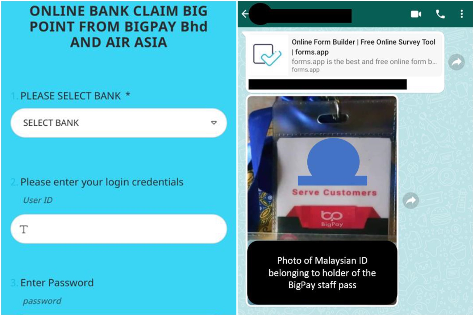 The scammers want the BigPay account details and one-time password or bank account details.