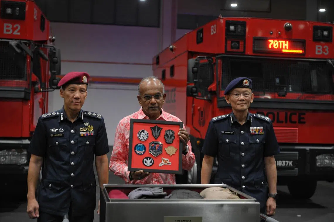 Mr Shanmugam, Commissioner of Police Hoong Wee Teck, and SOC commander Arthur Law, who is also a senior assistant commissioner of police, launched a time capsule to be opened in 30 years at SOC’s 100th anniversary.