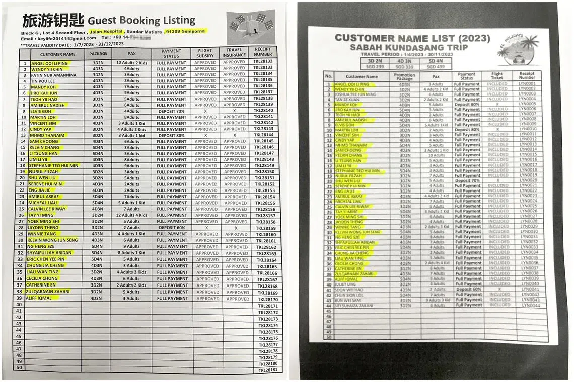 In the messages, Issac also sent screenshots of bank transactions purportedly made by other customers, as well as a “guest list” with 39 names, claiming these were people who had already booked the tour package.