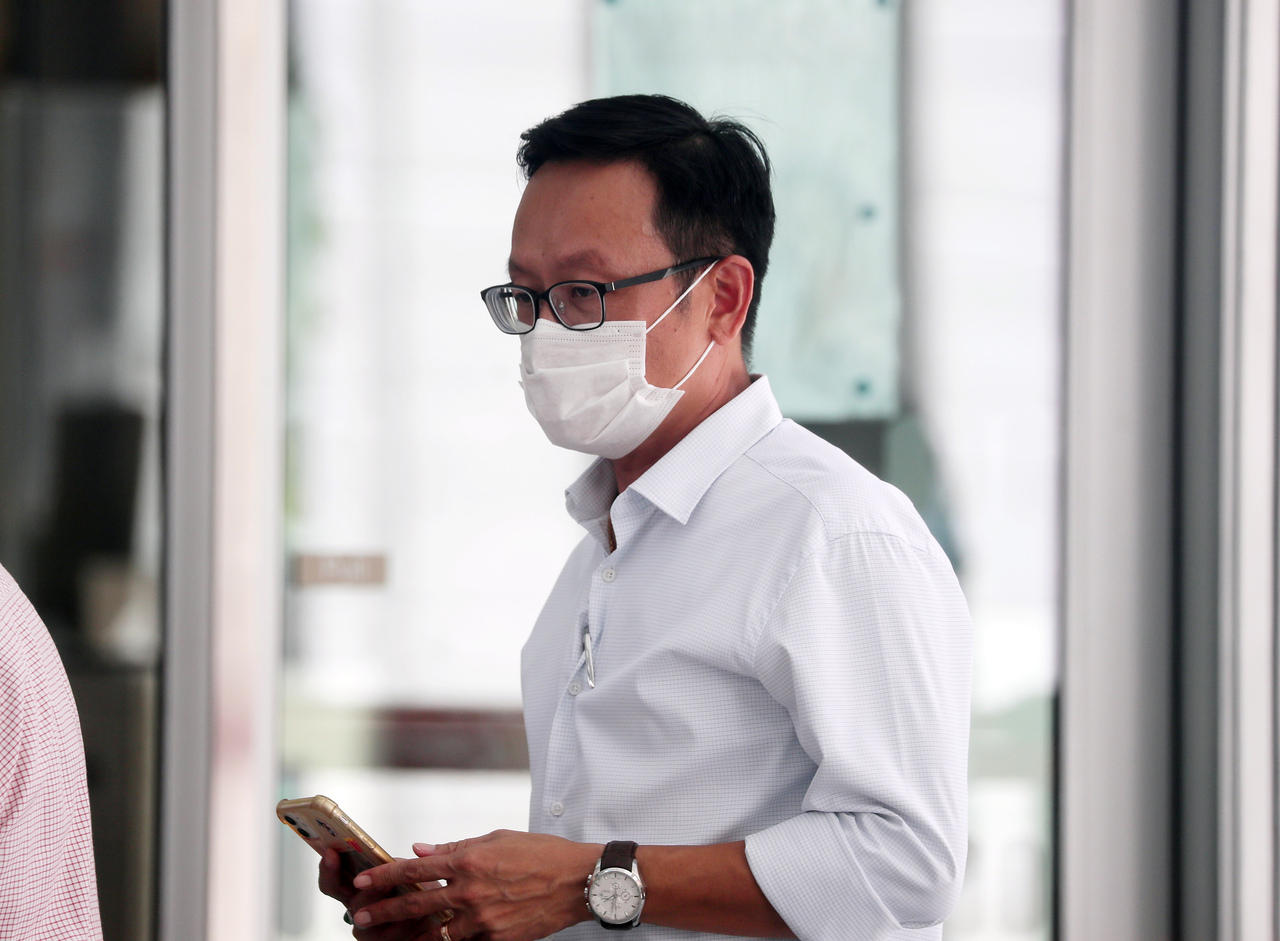 Former project manager at Samwoh, Mr Fong Woei Jiun, arriving at the State Courts on Nov 30, 2021.
