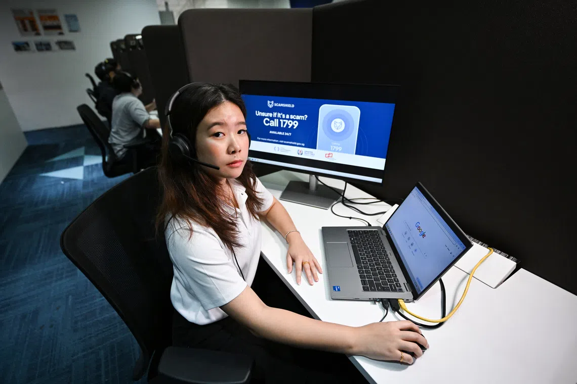 ScamShield helpline operator Ashley Teh responds to an average of about 50 calls a day from anxious members of the public.