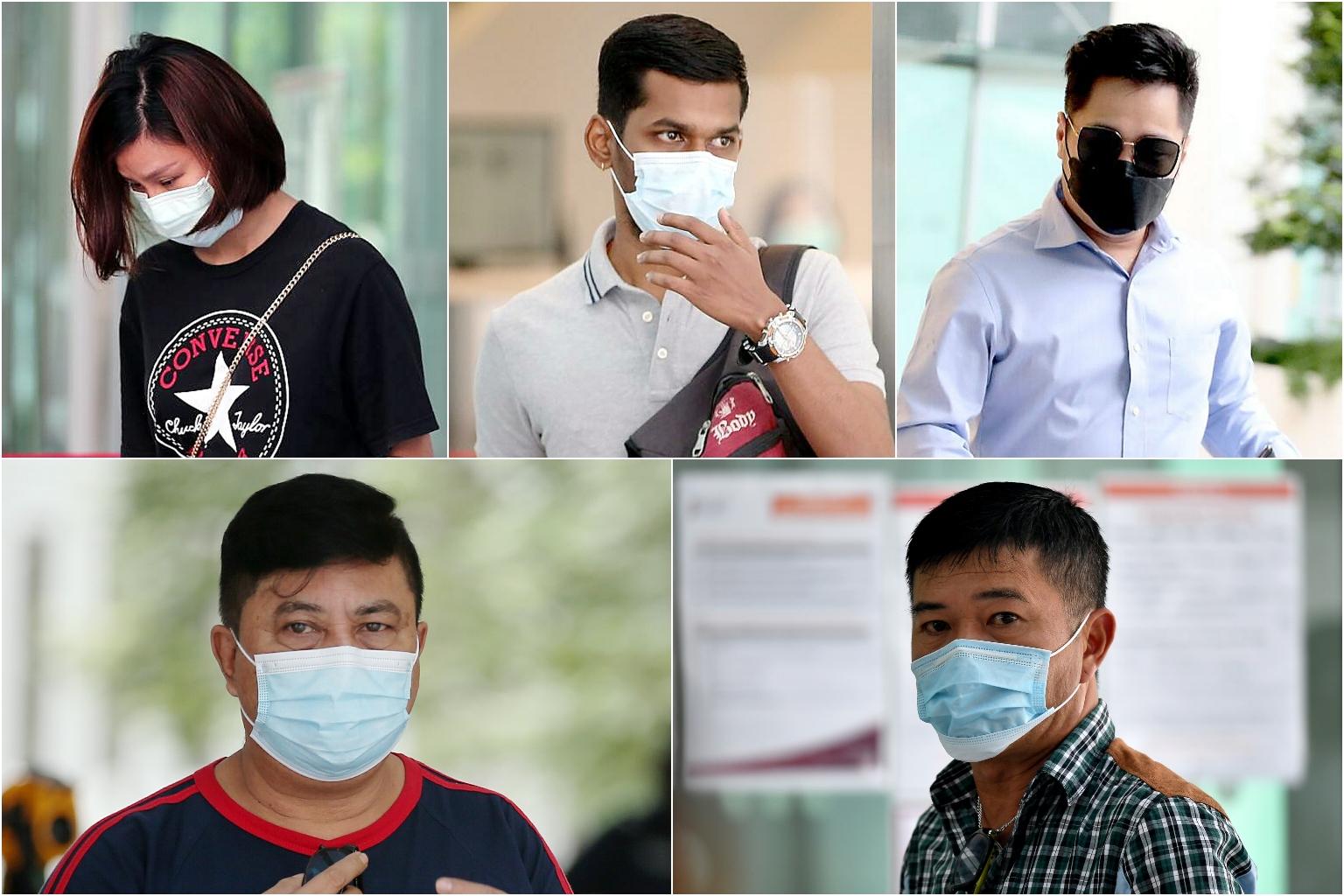 (Clockwise from top left) Cheng Fengzhao, Arvinish N. Ramakrishnan, Chng Tianxi, George Heng Seng Huat and Zahari Samat were sentenced in court over offences linked to the coronavirus outbreak.