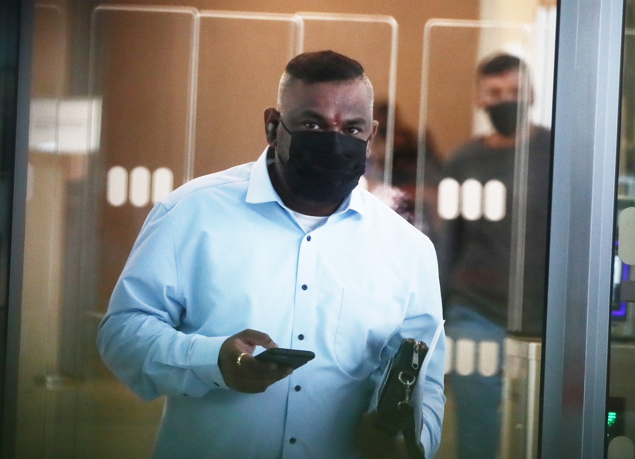 Kumunan Rethana Kumaran leaving the State Courts on April 14, 2022.