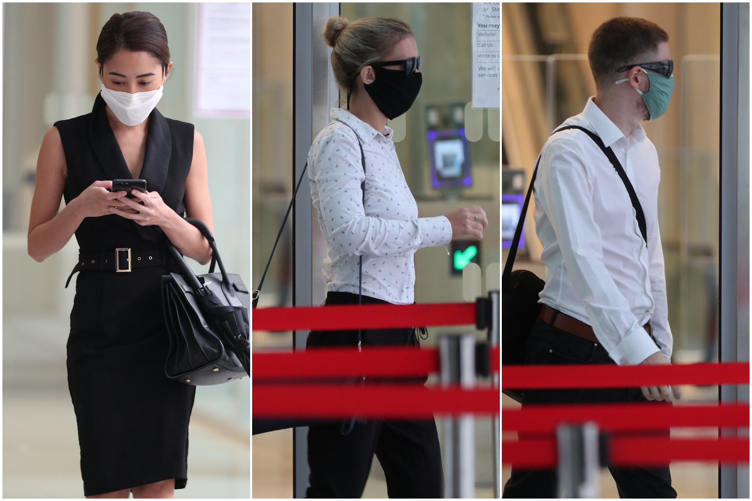(From left) Natalie Joanna Sarkies, Zoe Louise Cronk and Richard Henri Lagesse were among those who pleaded guilty to an offence under the Covid-19 (Temporary Measures) Act.