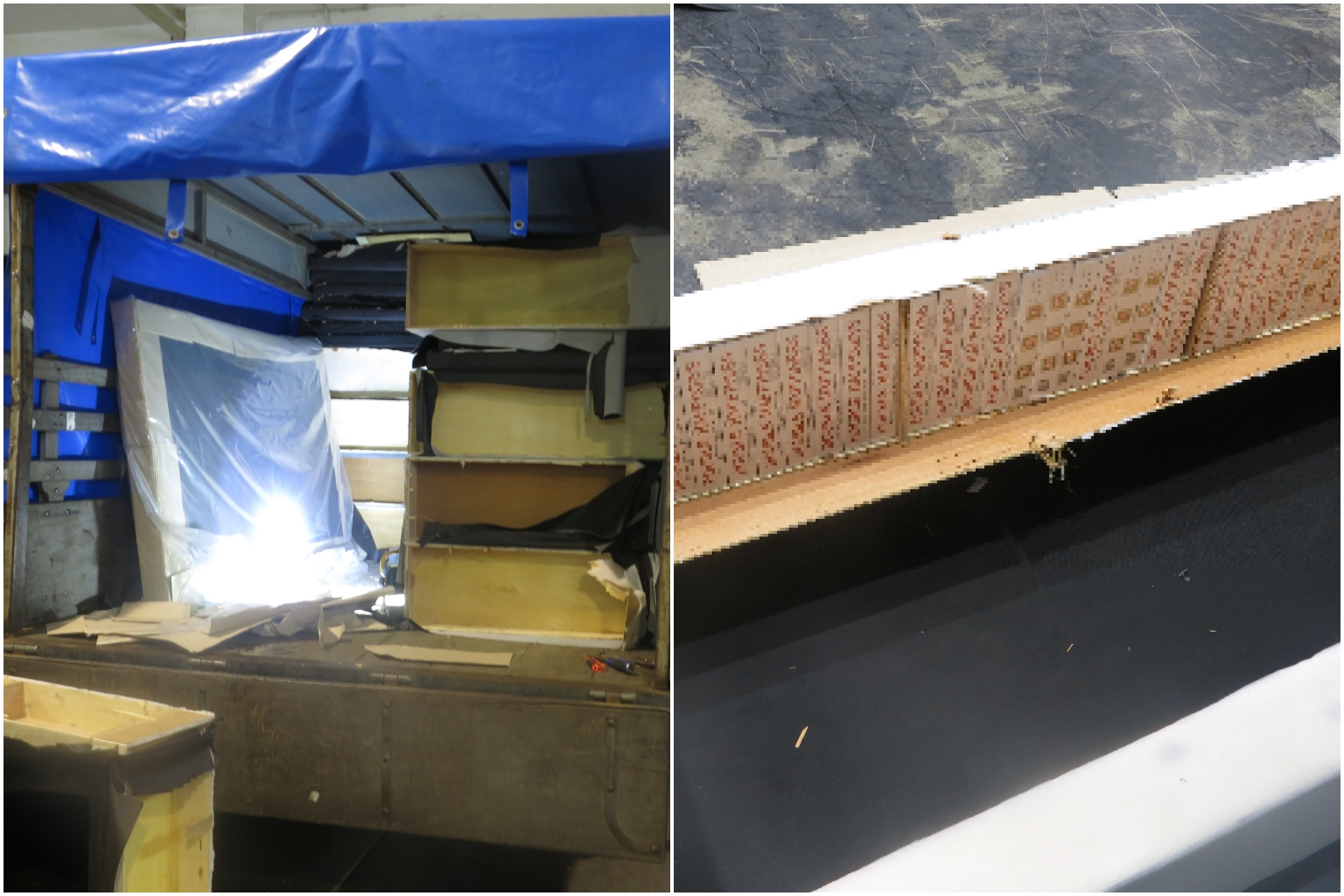 At the same time, officers moved in to inspect the unit and found another man retrieving duty-unpaid cigarettes hidden in bed frames and packing them into canvas bags.