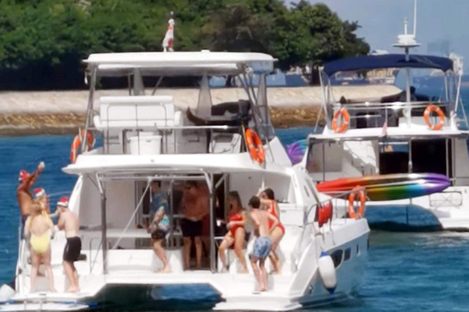 Video clips of the party held off Lazarus Island, one of the southern islands, showed the group dancing without masks.