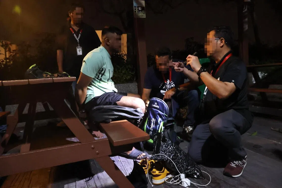 SINGAPORE – The man was sleeping in a garden above an HDB multi-storey carpark in Woodlands when plainclothes officers surrounded him during a pre-dawn operation on April 8.