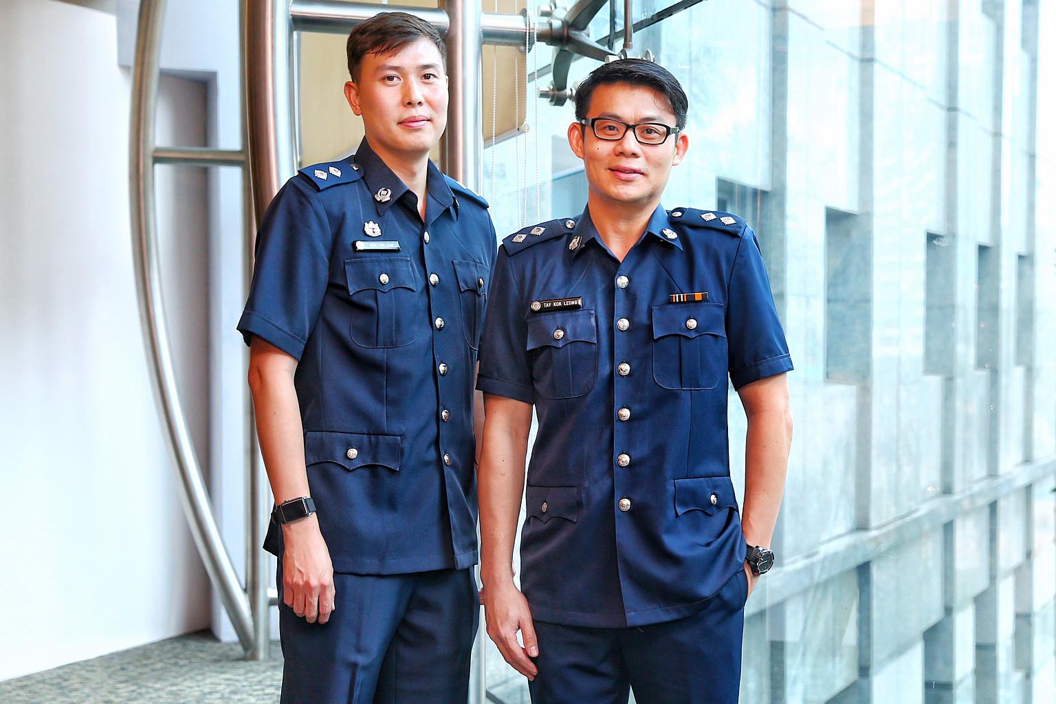 Inspector Ang Xin Yan (left) and Inspector Tay Kok Leong King were among those who received commendations on Feb 2, 2018.