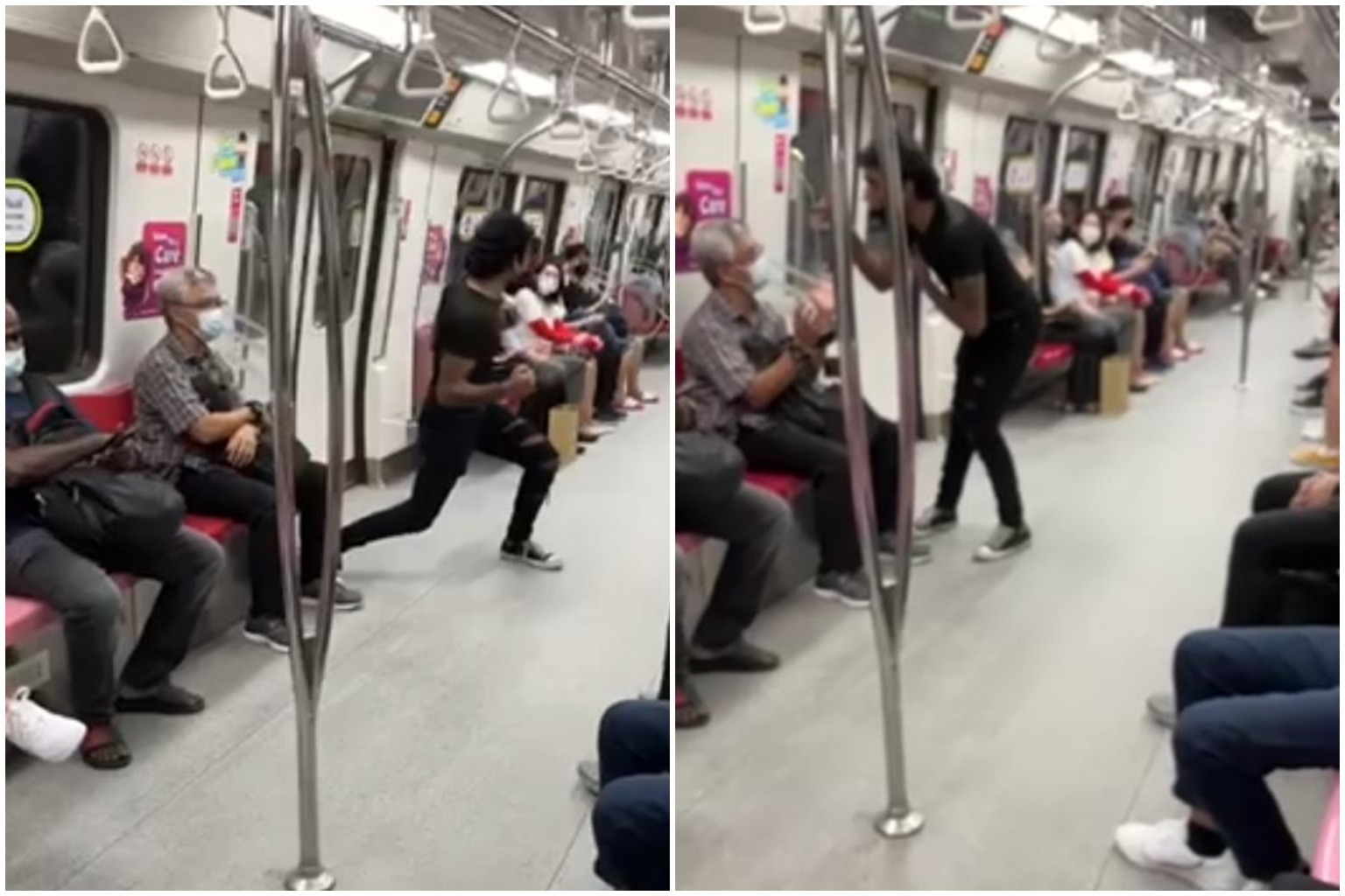 In a video contributed by Stomp, the younger man can be heard accusing the other commuter of staring at him.