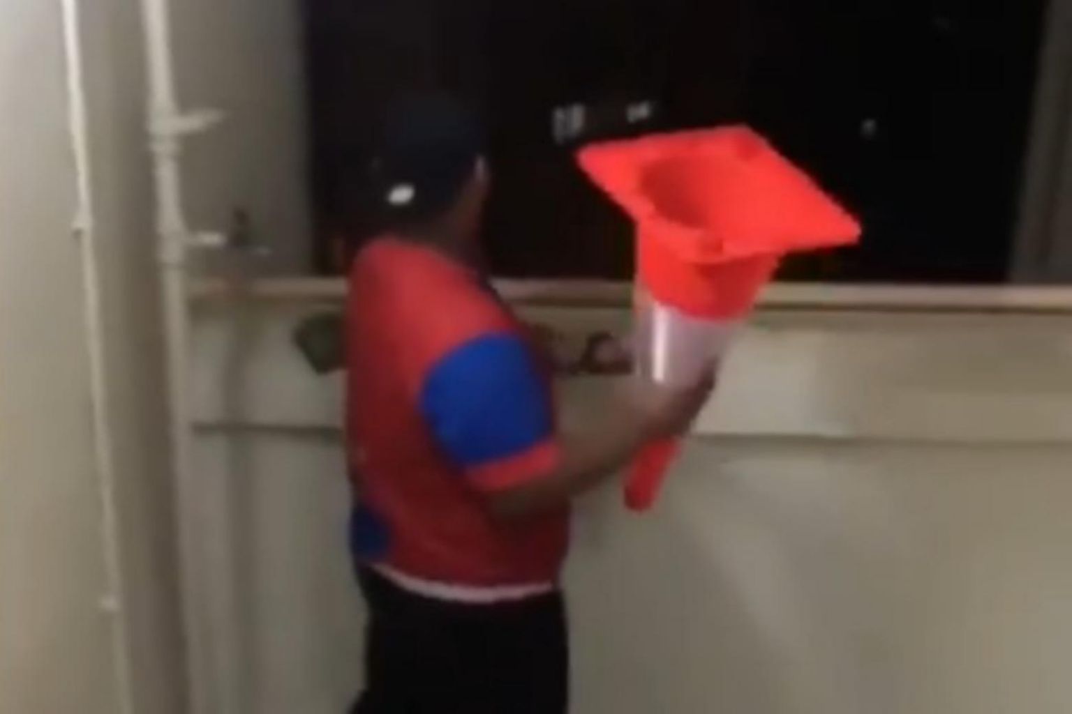 Teenager filmed throwing traffic cone down a Housing Board block arrested