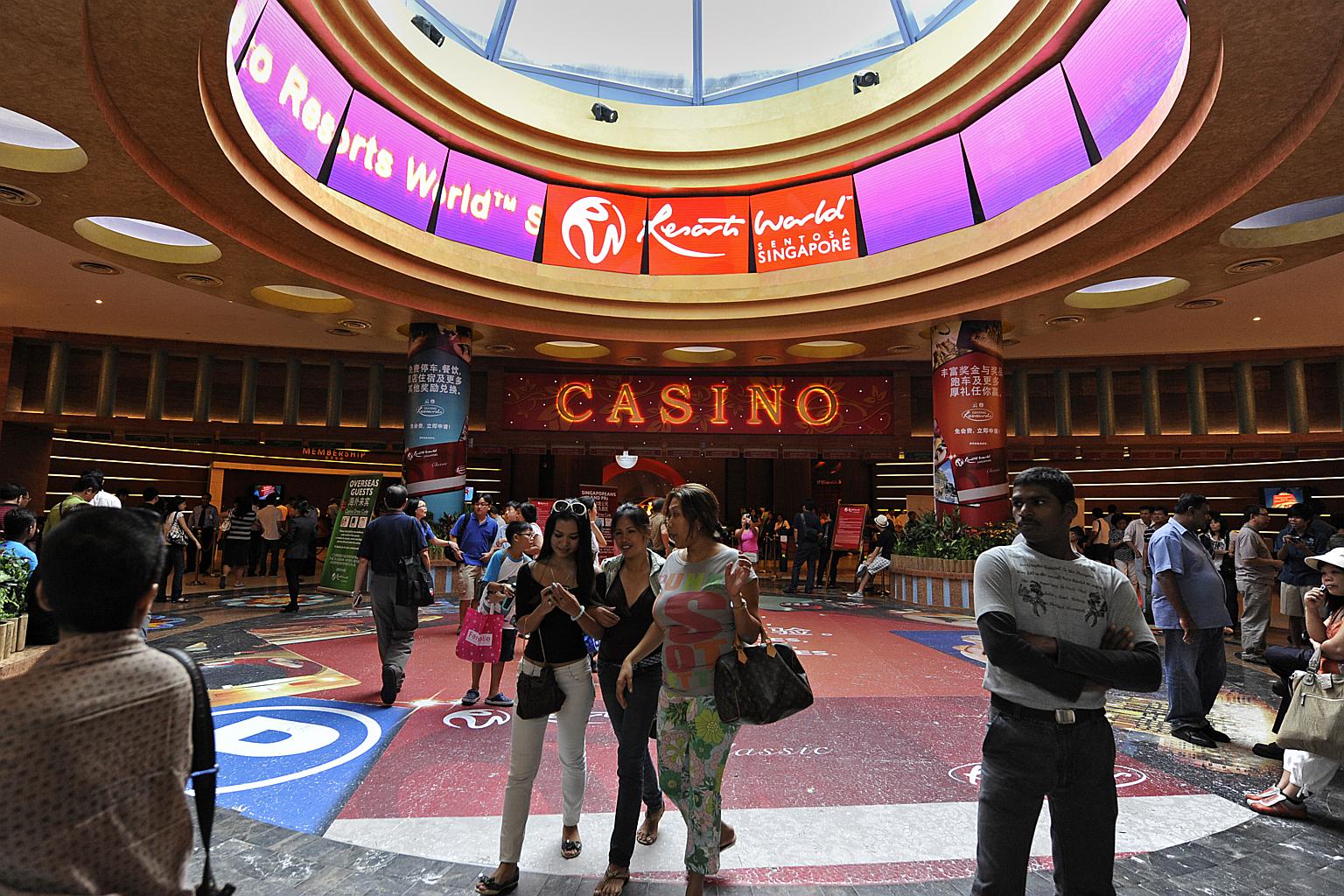 Guests at the entrance to the casino at Resorts World Sentosa.
