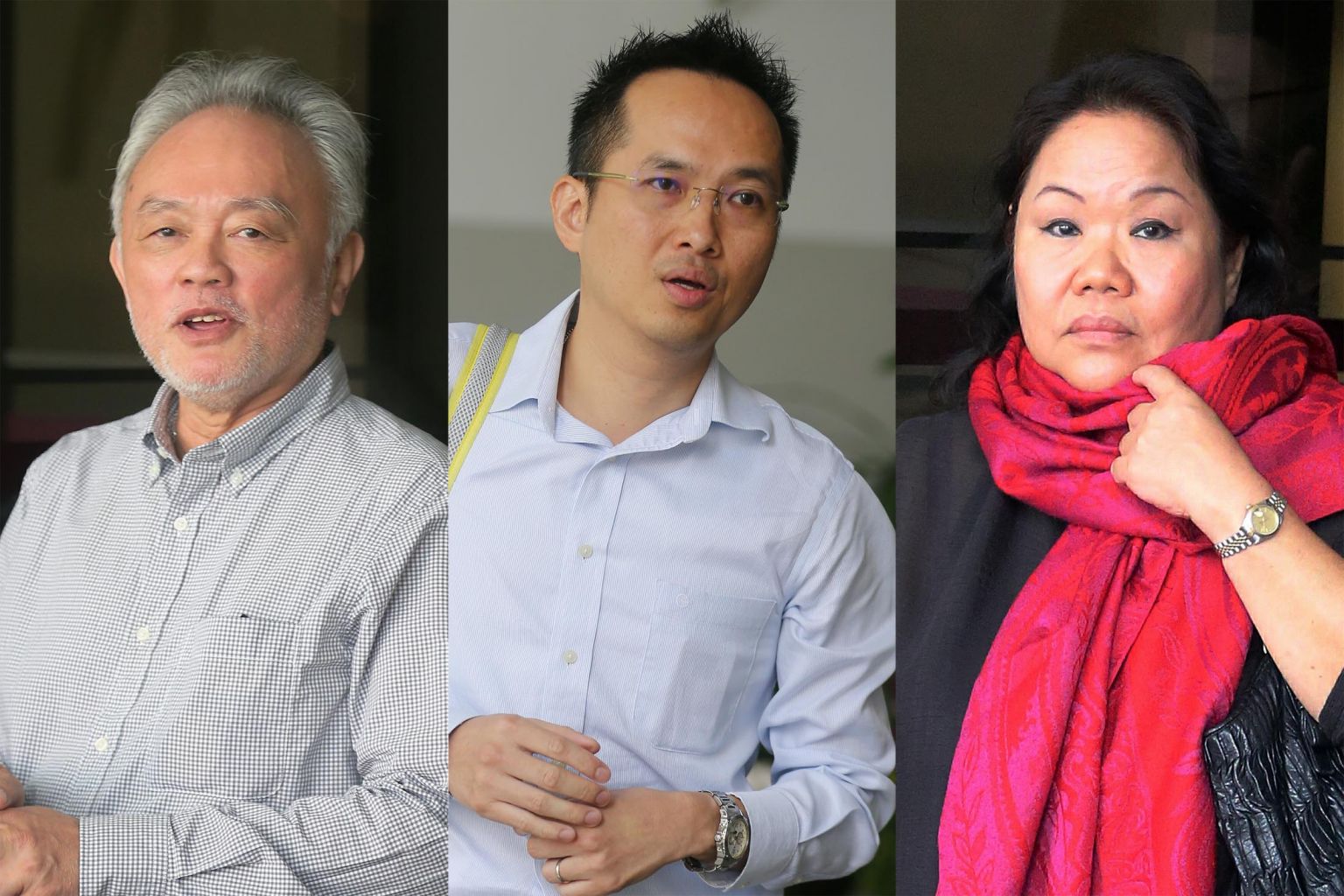 From left: Andrew Lim Ann Hoe, Chin Ming Kam and Goh Seow Mooi are accused of promoting a pyramid selling scheme known as the Maxim Trader Compensation Plan.