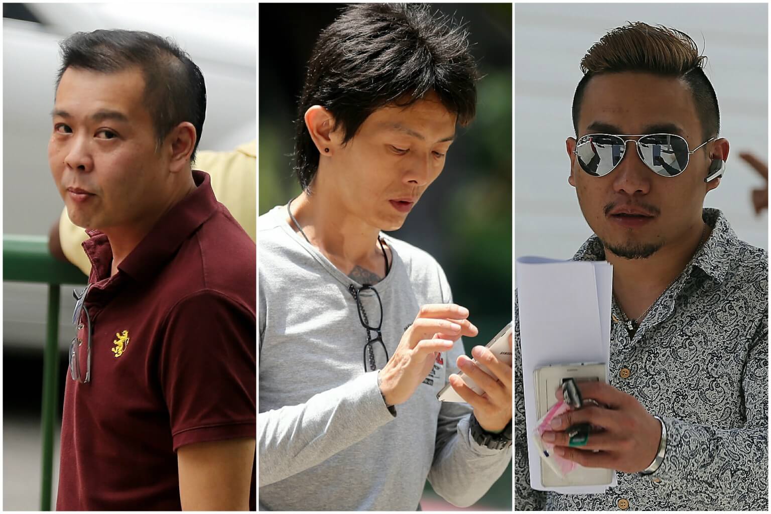(from left to right) Andra Chew Keng Leng, Lim Boon Tiong, and David Tan, had pleaded guilty to being members of an unlawful assembly whose object was to harass a cashier at a Chinese soup stall.
