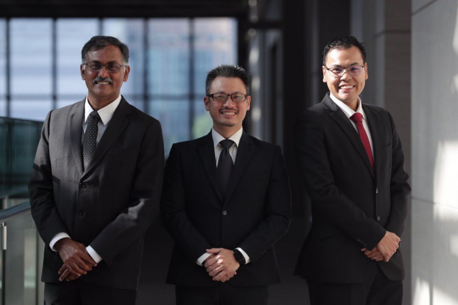 (From left) Newly appointed Senior Counsel Murali Pillai, Jason Chan and Mohamed Faizal Mohamed Abdul Kadir.