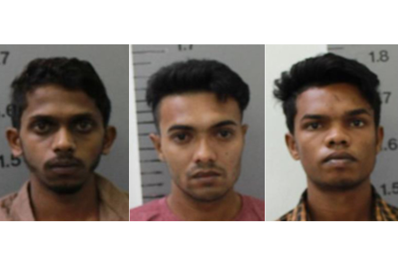 (From left) Nalliah Selvamany Rohan, Kanthanadan Jasitharan and Roopan Diasrepinsan were arrested on June 27, 2018, after anomalies were detected in their visas during checks at Woodlands Checkpoint.