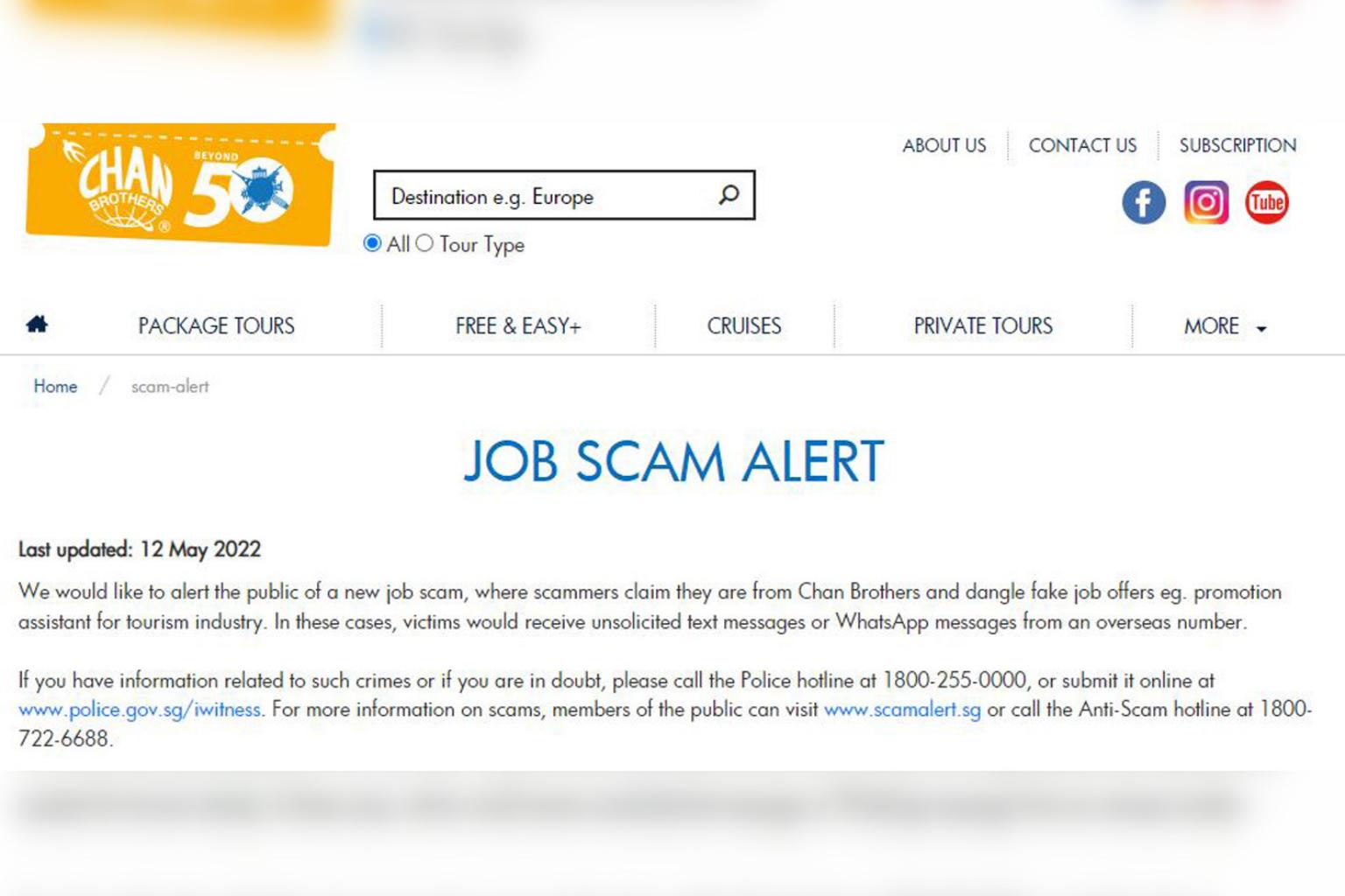 On its website, Chan Brothers Travel warned its customers about this new scam.