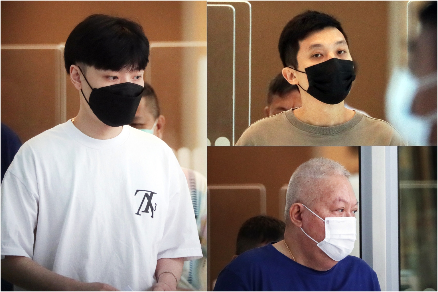 (Clockwise from left) Keeran Marcus Phang Guan Wei, Alvin Oey Wei Zhong and Ding Kuon Chwo were each handed one charge of engaging in a conspiracy to intentionally obstruct the course of justice.