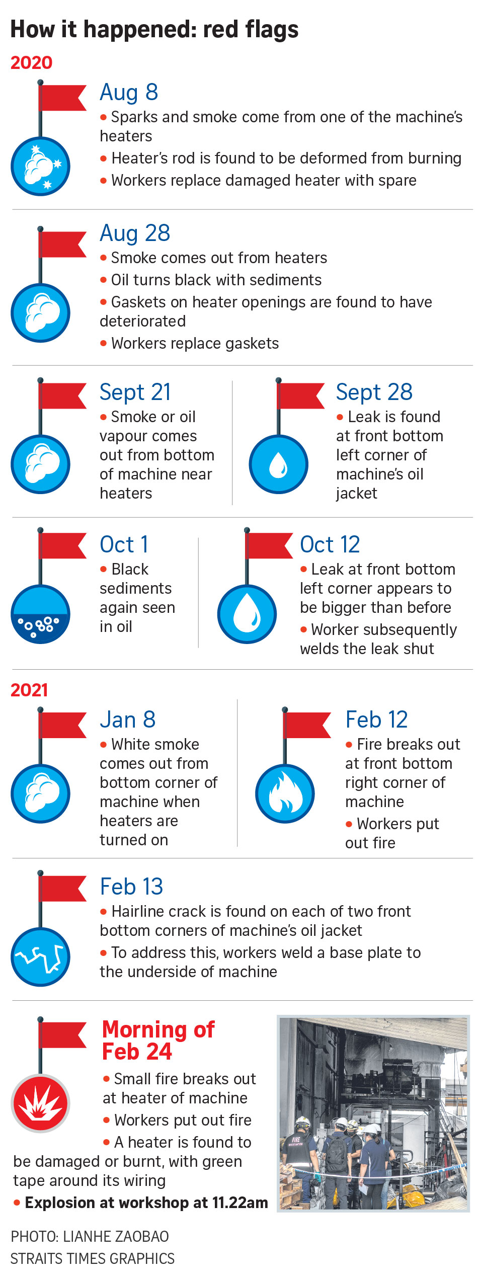 "Chua had made ill-founded assumptions when dealing with the operation, modifications, and failures of the mixer machine, and had been the person responsible for instructing Stars Engrg's workers on dealing with the mixer machine," the inquiry committee said.