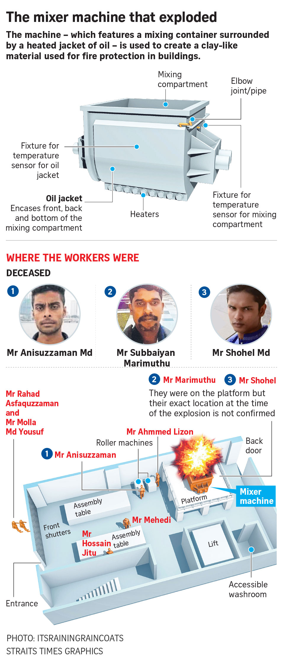 Three of the employees - Mr Subbaiyan Marimuthu, 38, Mr Anisuzzaman Md, 29, and Mr Shohel Md, 23 - died from severe burns that covered 90 per cent of their bodies.