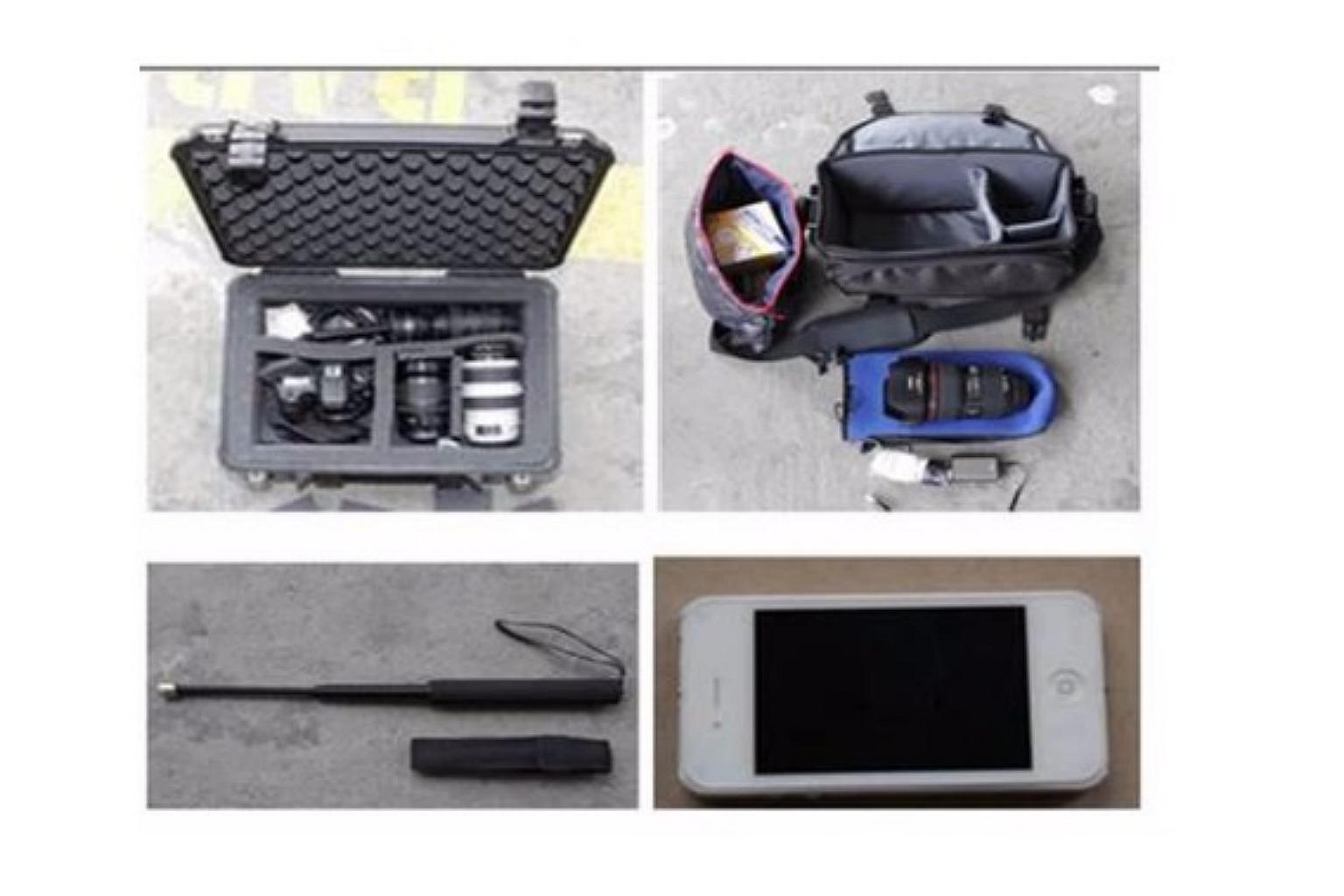Stun guns, a retractable baton, as well as identity cards and a passport belonging to other individuals were also found.