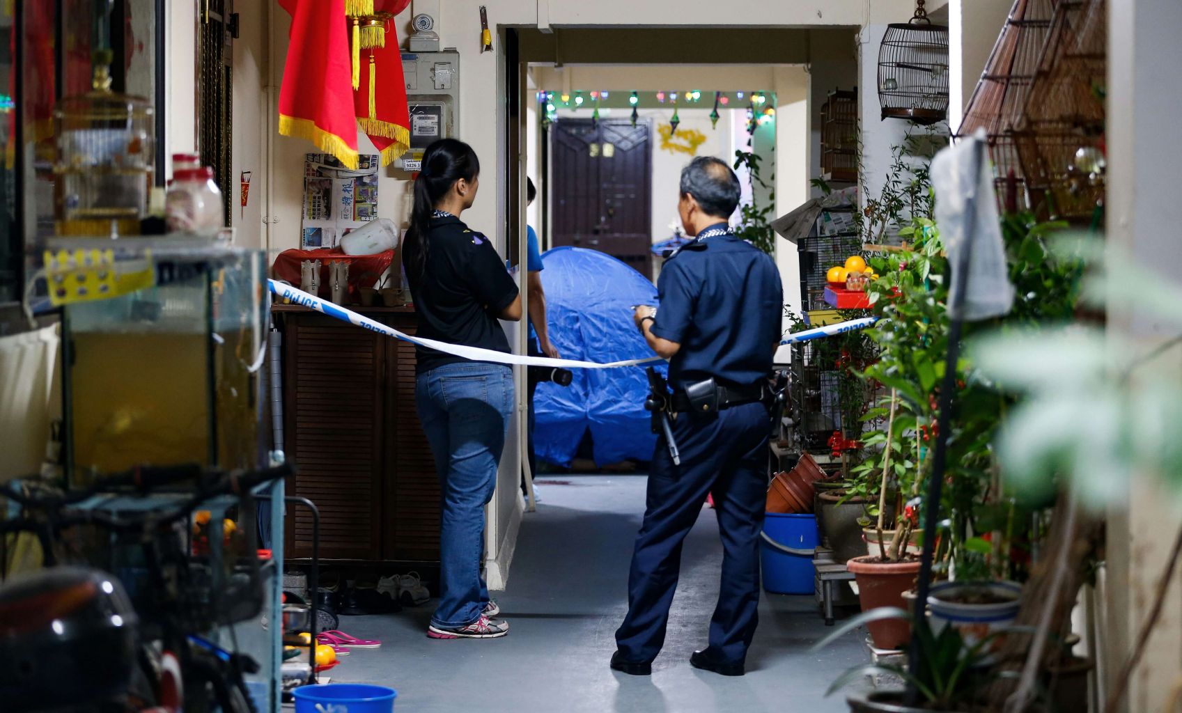 Police officers cordoning off the area at Block 279 Yishun Street 22, where the body of Mr Shawn Ignatius Rodrigues was found on July 9, 2016.
