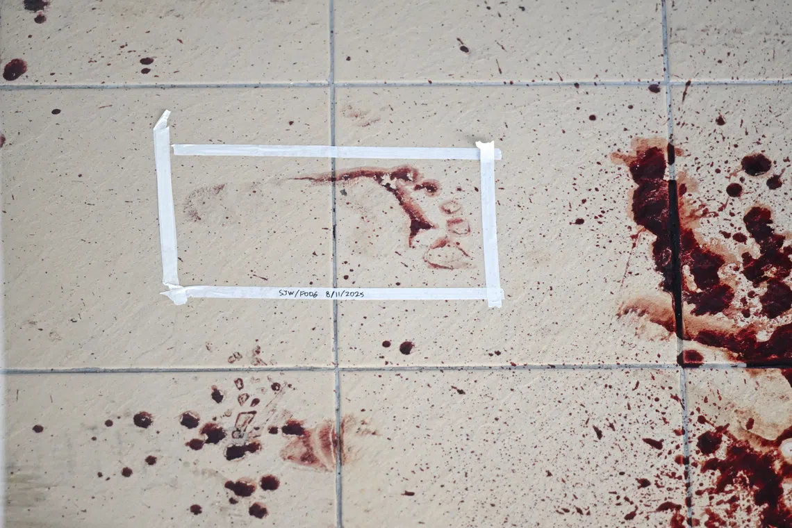 Blood stains on the 17th floor of Block 51 Chin Swee Road.