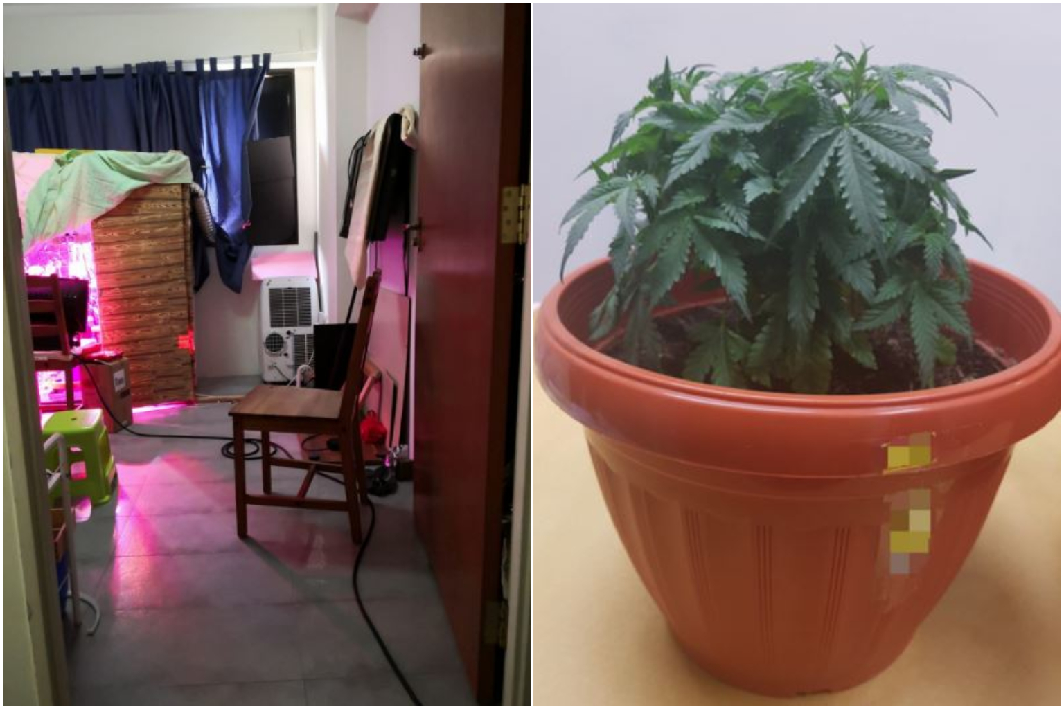 Pictures of the raid show a makeshift greenhouse in the Yishun unit, with reflective surfaces, special pink lighting and controlled temperature to cultivate the cannabis plants.
