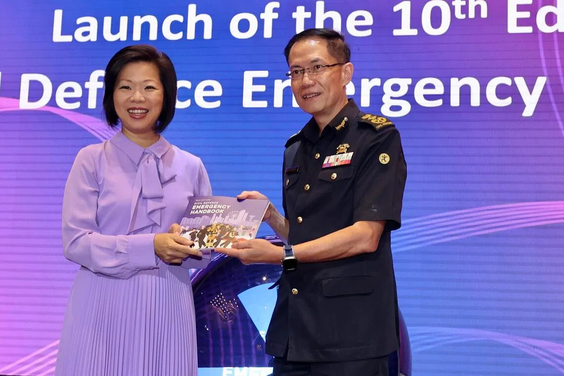 Ms Sim, who is also Senior Minister of State for Foreign Affairs, participated in the launch of the 10th edition of the Civil Defence Emergency Handbook, alongside SCDF Commissioner Eric Yap.