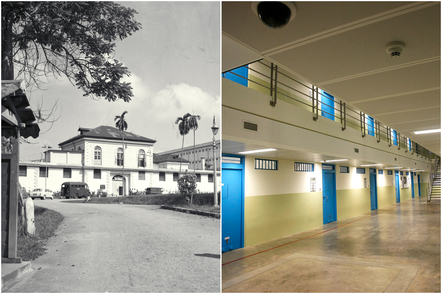 Outram Prison back in 1963 (left) and Changi Prison Complex.