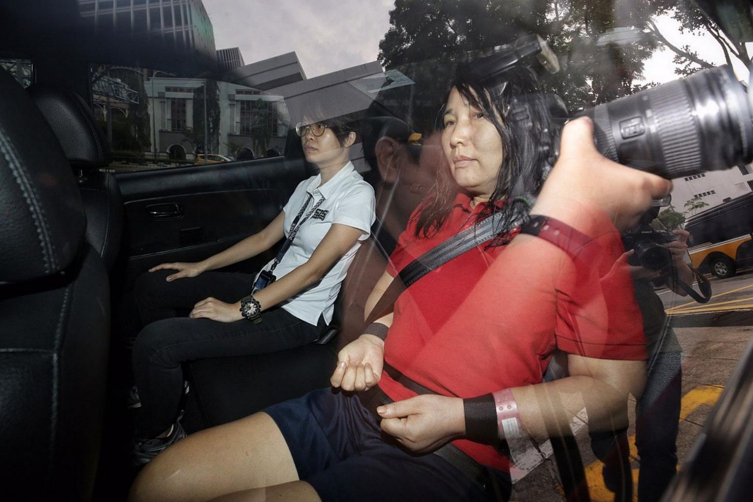 Wang Shuzhen, 54, arriving at the State Courts, on Oct 28, 2019. Wang was accused of killing Mr Teh Hock Pine on Oct 27, 2019, sometime between 5am and 6.02am.