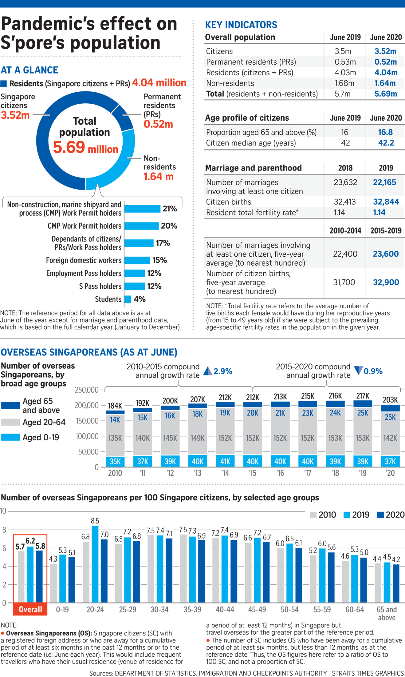 The family are among the many overseas Singaporeans who returned amid the pandemic. According to the Government's annual Population in Brief report released yesterday, the total number of overseas Singaporeans fell from 217,200 last year to 203,500 this year.