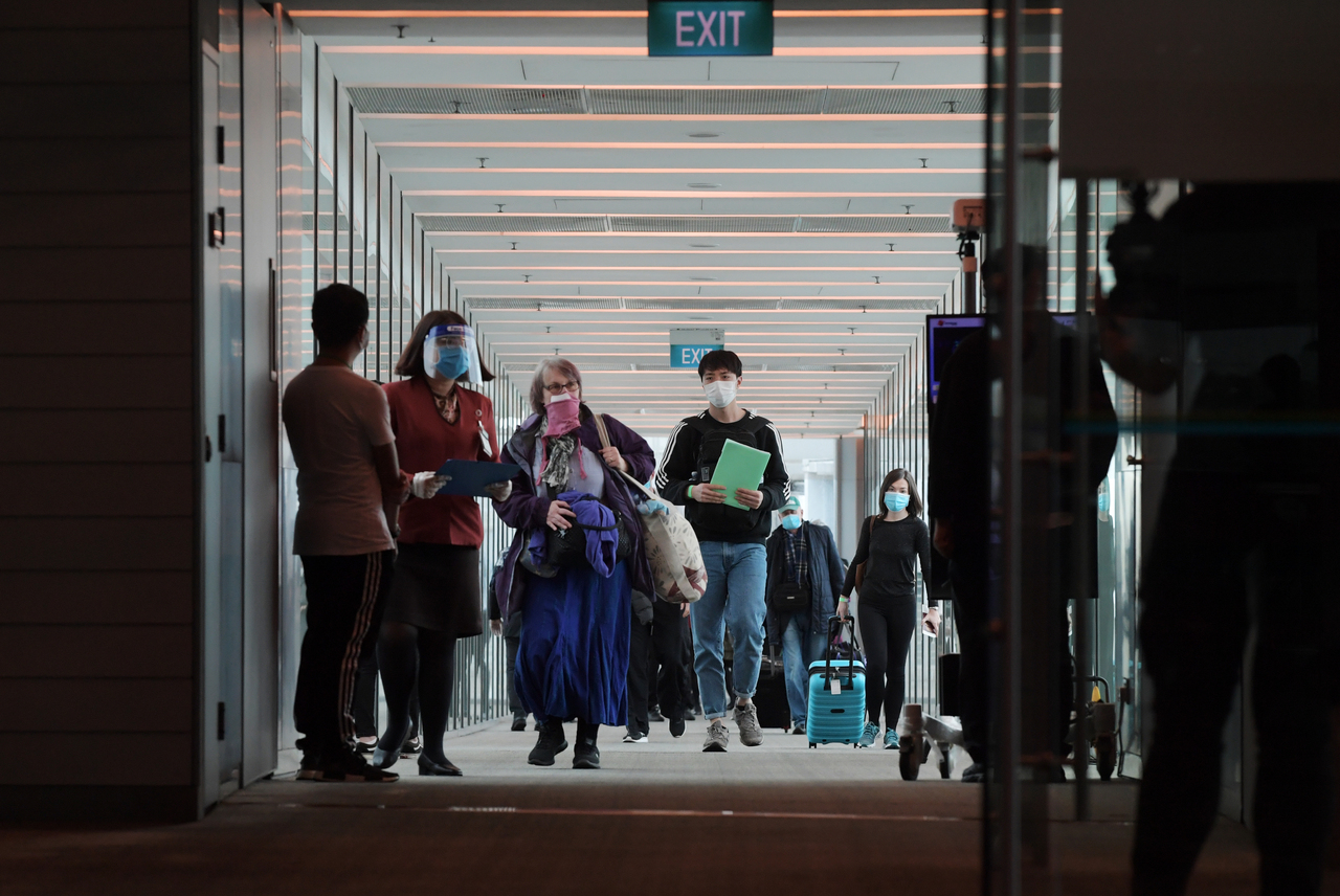 Passengers arriving on a Singapore Airlines flight to Changi Airport Terminal 3, on June 23, 2020.