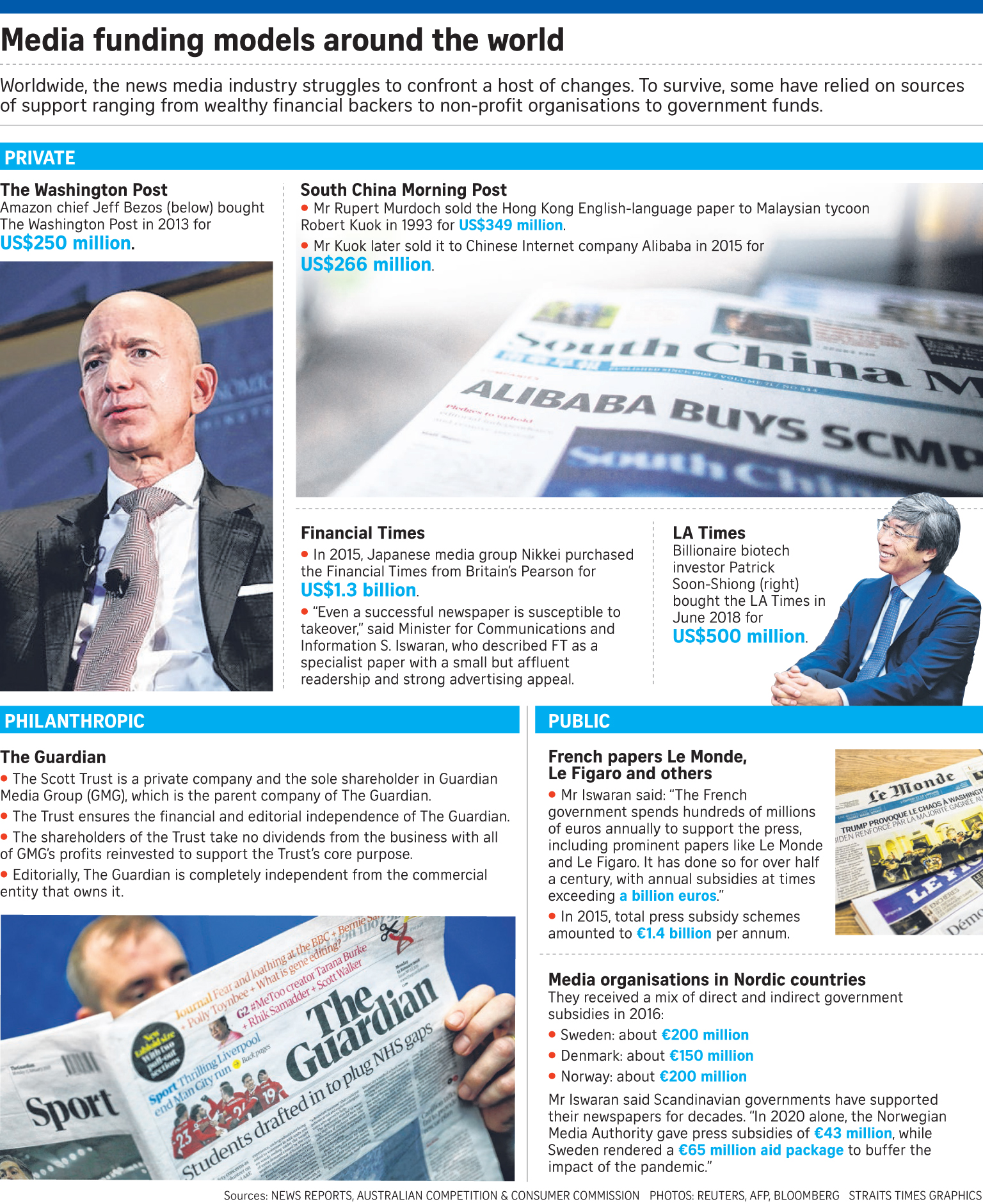 Mr Iswaran had earlier set out the severe structural pressures on the global news media industry, which have been exacerbated by the Covid-19 pandemic. Most publications are running deficits, and many newsrooms are shrinking or even closing, he said, adding that "there is no universal solution".