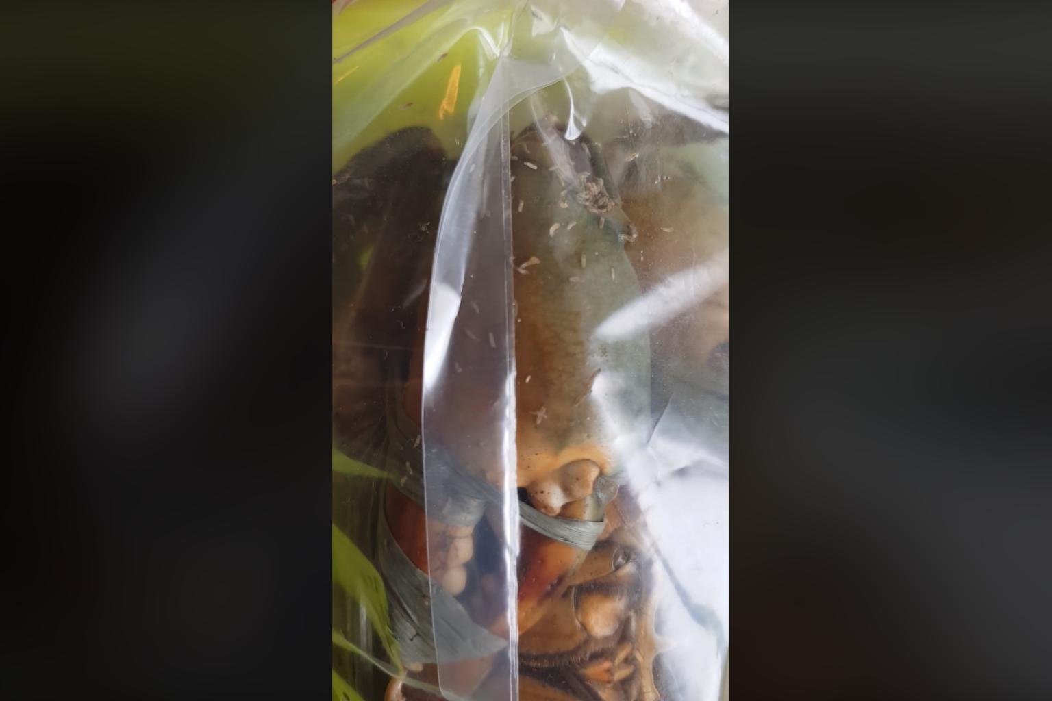 Mr Cai shared a video of the bag of crabs in a Facebook group on Thursday afternoon and wrote in the post: "I just bought three live crabs from J8 NTUC and after an hour, I saw many live maggots on the crabs though the crabs were still alive."