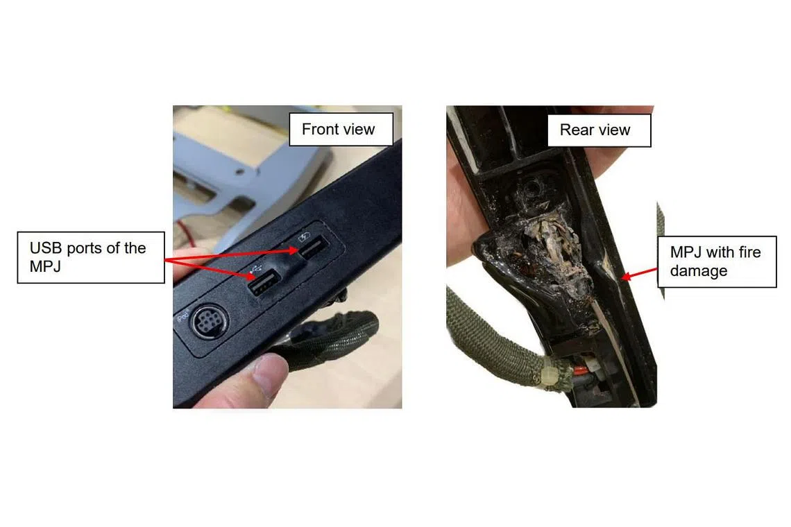 Investigators said that the MPJ is part of the IFE panel. The MPJ comprises two USB ports and an iPod connector.