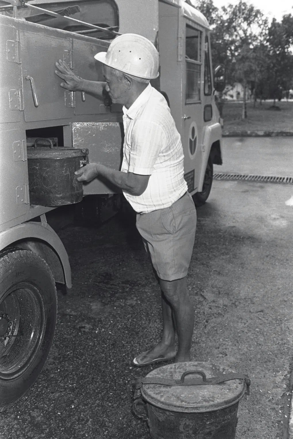 Singapore’s last night soil bucket reached the end of the road. The last bucket was carried to the Lorong Halus Nightsoil Disposal Station, off Tampines Road.