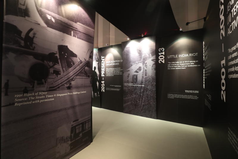 In line with this year's bicentennial celebrations - commemorating Sir Stamford Raffles' arrival in Singapore in 1819 - the first part of the exhibition highlights 30 key incidents over the last 200 years of our history that have threatened national peace and security.