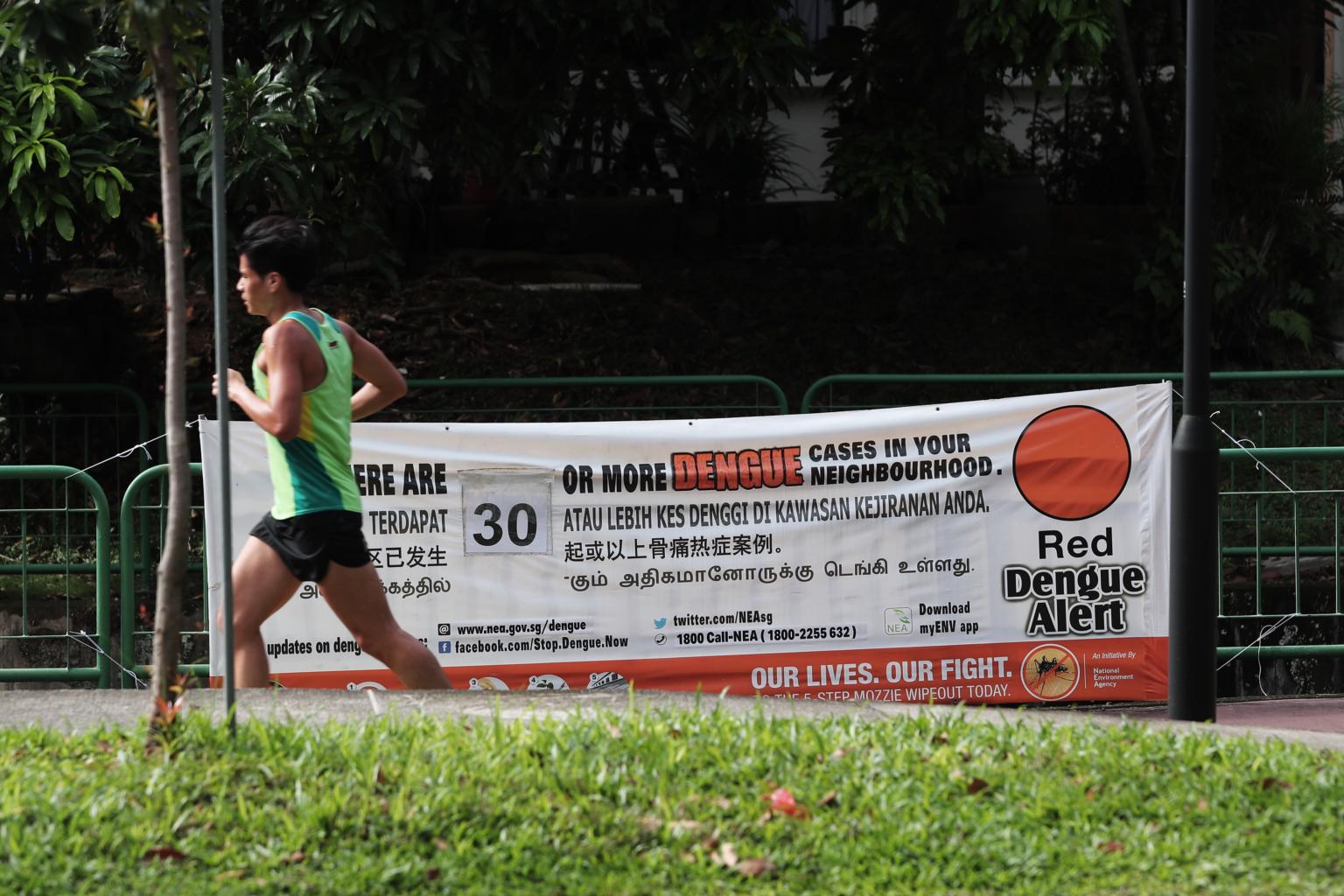 He said that the National Environment Agency's (NEA's) Gravitrap surveillance system has detected a rise in the Aedes aegypti mosquito population for five consecutive weeks, and that the rate of decline in weekly dengue cases has slowed down since four weeks ago.