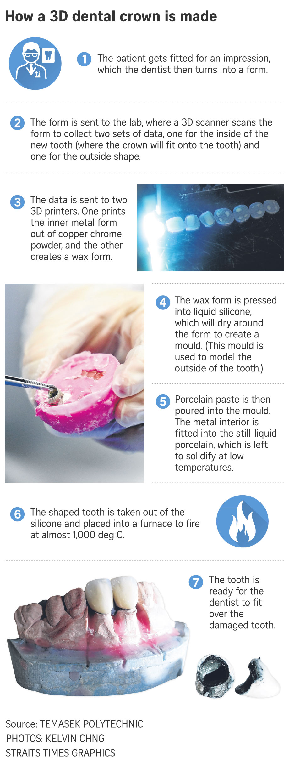 SINGAPORE - By the end of next year, patients who need dental crown or bridge treatment may be able to get it done within a shorter time, at a lower cost and with higher accuracy.