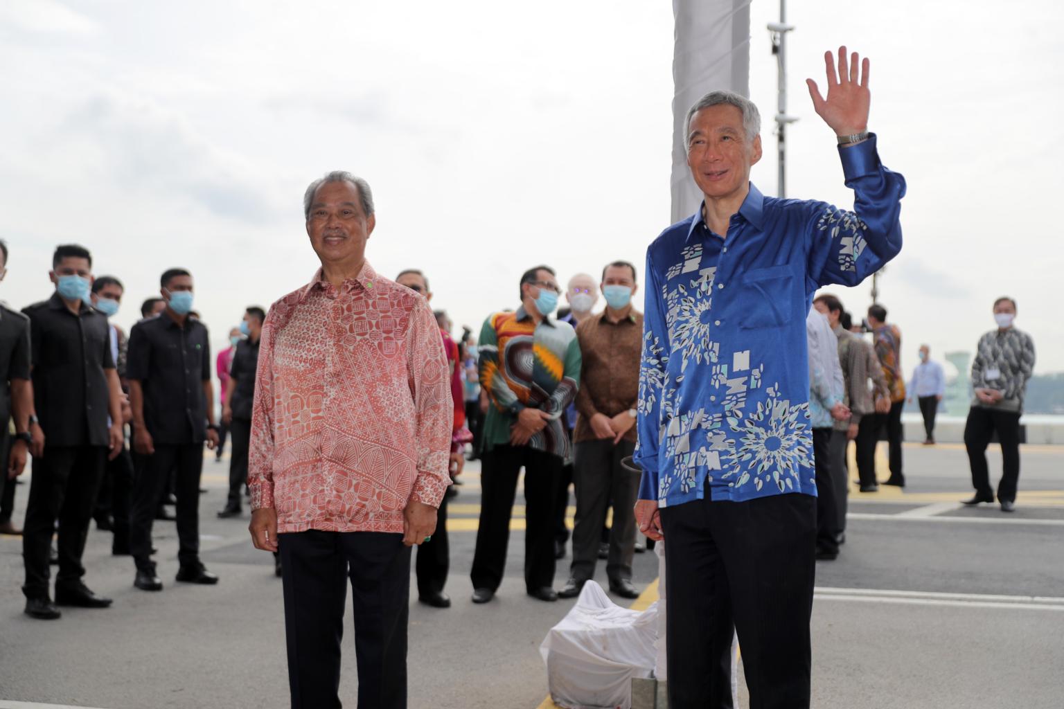 Malaysian PM Muhyiddin Yassin and PM Lee Hsien Loong at the Causeway, on July 30, 2020.