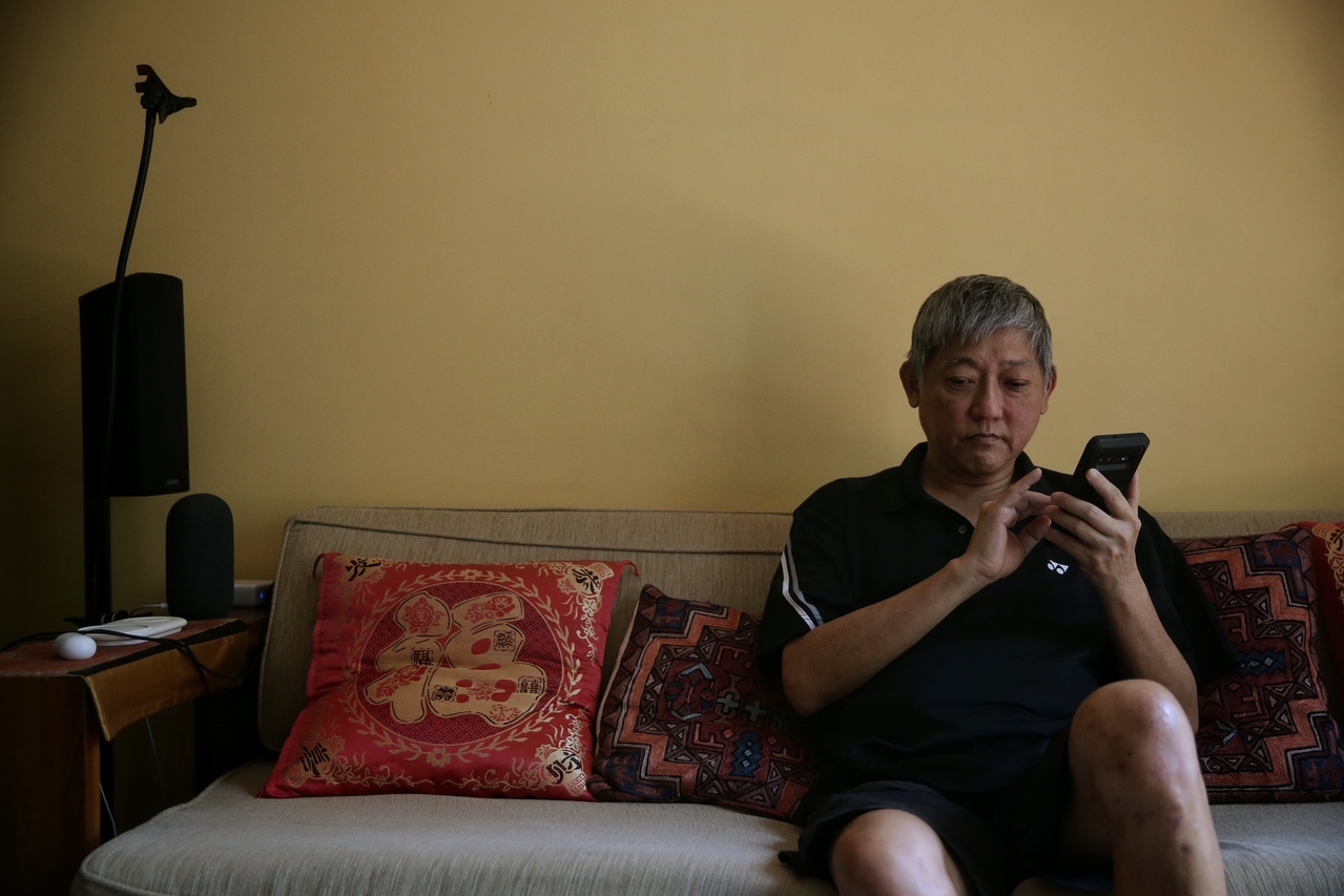 A spinal muscular atrophy condition prevents Mr Ang, 55, from moving his hands much, and the QR codes are "always too high", so he has to ask for help.