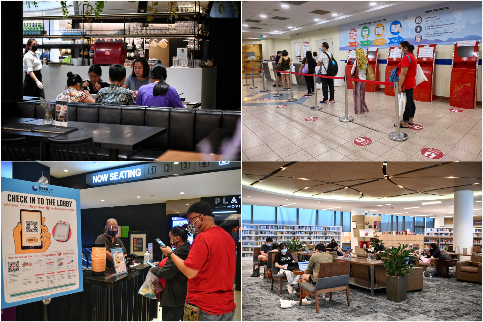 Otherwise, dining at hawker centres and coffee shops without these checks will remain at groups of up to two fully vaccinated people.